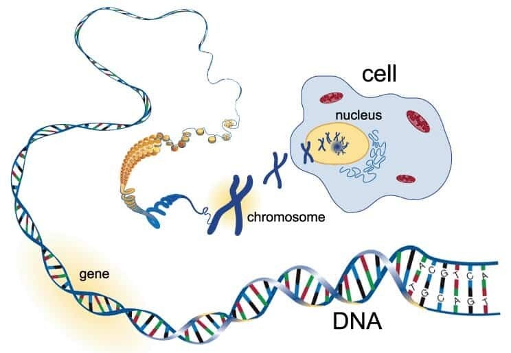 Zoals bij alle levende wezens, is het lichaam van een kat opgebouwd uit cellen. In iedere kern van de cel van het lichaam zitten chromosomen. Iedere chromosoom bestaat uit een heel lang, in elkaar gevlochten en opgerold draad. Dit is het DNA. De structuur van het DNA ziet eruit als een enorm lange wenteltrap (de bekende dubbele helix). Op de treden van deze trap liggen bouwstenen voor de erfelijke eigenschappen. Een aantal treden achter elkaar noemen we een gen. Elk gen beschrijft de code van een kenmerk, die (mede)bepaalt hoe de kat eruit ziet, hoe het lichaam werkt of hoe de kat is. Katten hebben 38 chromosomen (ter vergelijking: mensen hebben er 46). Chromosomen komen altijd in paren, dus een kat heeft 19 paren.