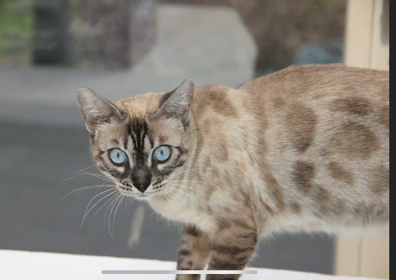 De seal point bengalen hebben net als de siamese donderbruine snuit , oortjes, poten en staart.